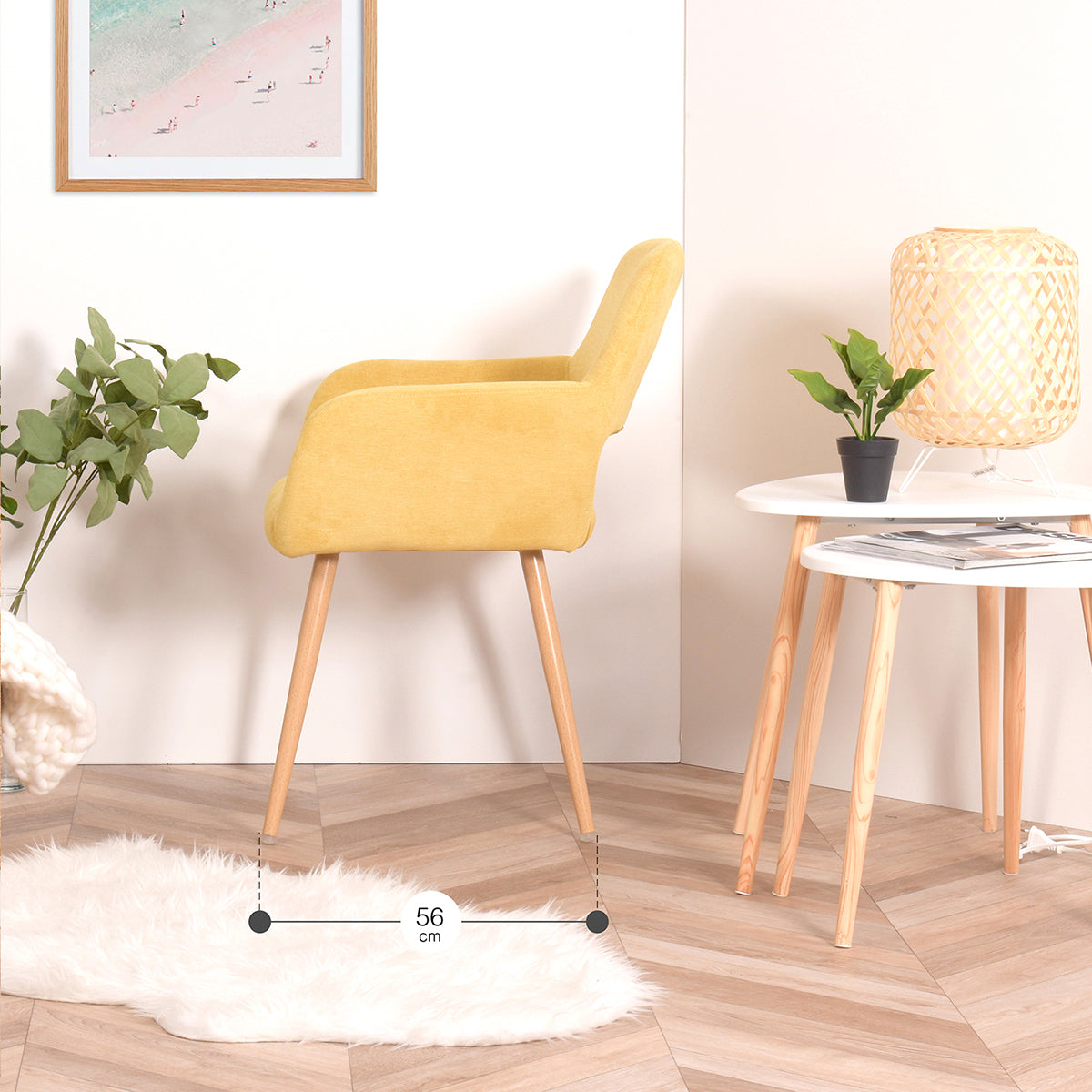 Yellow & Brown Fabric Arm Chair Dining Chair (Set of 2 )
